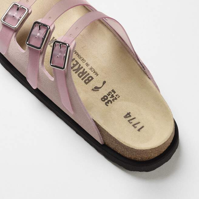Emphasizing the harmony between function and design, 1774 once again reimagines the Florida sandal. Handcrafted in Germany from premium materials, the Florida, which is punctuated with three slender straps, comes to life with a 70¡¯s inspired, semi-transparent PVC matte finish and premium Cazador leather on the buckle part.