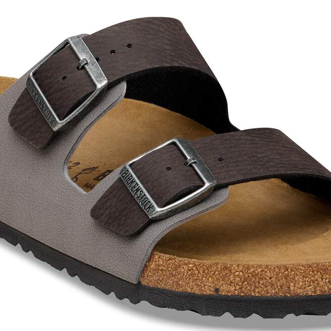 The BIRKENSTOCK Arizona is a genuine classic that has been delighting both men and women for decades. This simple sandal with two straps stands for timeless design and has long held cult status thanks to its comfort factor. The sophisticated Birko-Flor? synthetic material gives the sandal straps a matte finish reminiscent of natural leather grain, yet they are 100% vegan. The upper is made from smooth microfiber with a velvety feel.