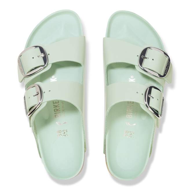 The legendary two-strap design from BIRKENSTOCK with amplified buckle accent – the Arizona Big Buckle. The Big Buckle version features a large, elegant buckle creating a bold yet minimalist design. The semi-exquisite footbed is fully lined with soft piumato leather, making it exceptionally comfortable. The upper is made from high-quality natural leather with a high shine finish.