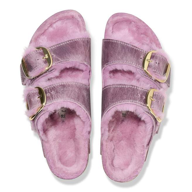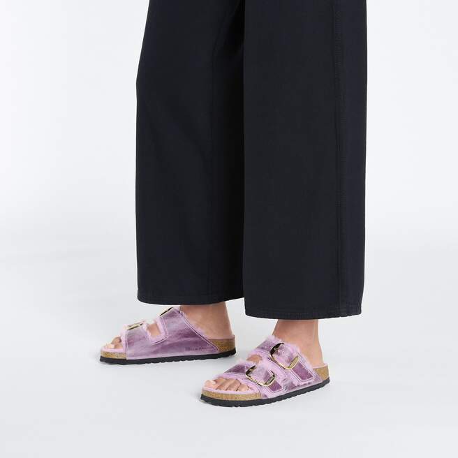 The legendary two-strap design from BIRKENSTOCK – the Arizona. This extra cozy version features tonal shearling lining and a big, elegant pin buckle. The upper is a soft yet durable oiled leather.