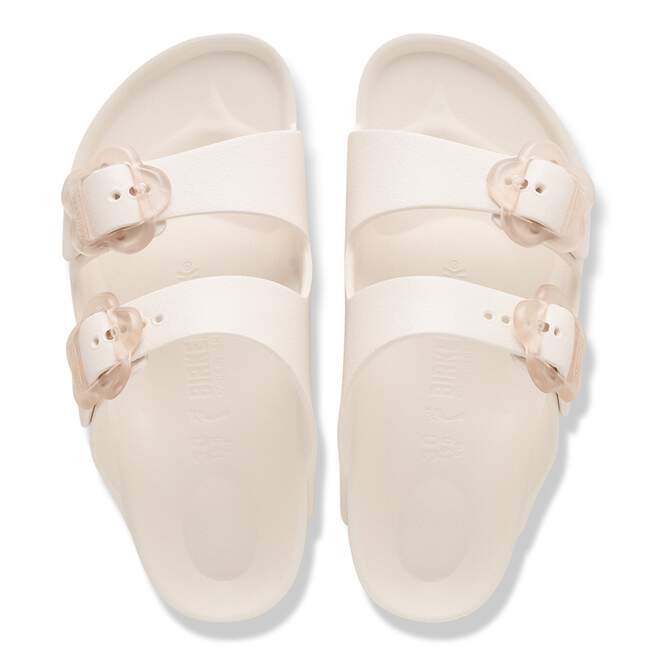 The BIRKENSTOCK Arizona is a genuine classic that has been delighting wearers with its timeless design for decades. The two-strap model fits kids¡¯ feet perfectly ¨C even during boisterous play! This version comes with a fun floral buckle made from corrosion-resistant plastic. Modeled on the cork original, this sandal is made from the especially light and highly flexible material EVA. This high-quality, odor-neutral synthetic material which has been tested for harmful substances is shock-absorbent, water-resistant, and skin-friendly. It¡¯s therefore perfect for the beach, the garden, or playgrounds.