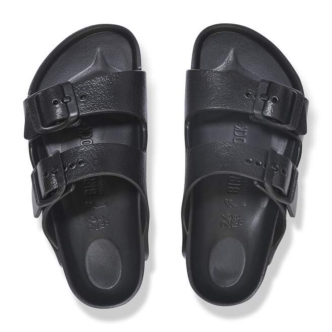 The legendary two-strap design from BIRKENSTOCK – the Arizona for kids. Modeled on the cork original, this sandal is made from ultra lightweight and highly flexible EVA. These sandals are shock absorbing, waterproof, and skin-friendly. Wear them at the beach, in the backyard, or by the pool. Sandals for all-day play!