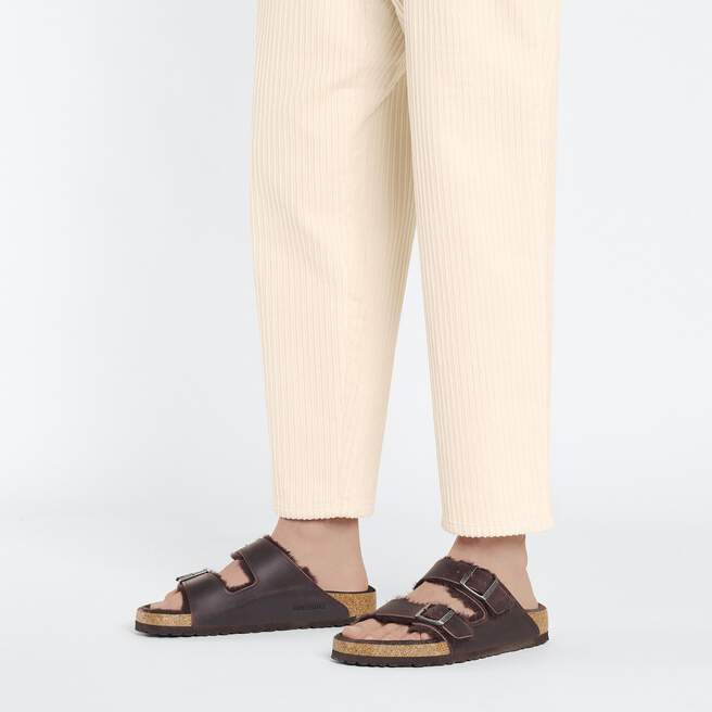 The BIRKENSTOCK Arizona is a genuine classic that has been delighting both men and women for decades. This simple sandal with two straps stands for timeless design and has long held cult status thanks to its comfort factor. Here, the classic model comes in a particularly cozy version with shearling lining and straps lined with shearling. The perfect shoe for cozy winter evenings by an open fire! The upper is made from extra thick, oiled nubuck leather and features an open-selvage finish.