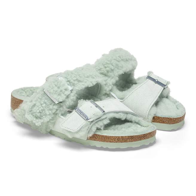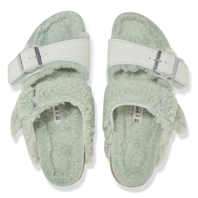 The coziest material mix of the season. Soft shearling and oh-so-fluffy teddy pair up on the Arizona sandal. Genuine shearling lines the sandal’s suede strap for a soft touch, while teddy shearling fluffs up the second strap, lined with suede for a velvety feel. Teddy shearling even blankets its contoured footbed for the ultimate cozy finish.