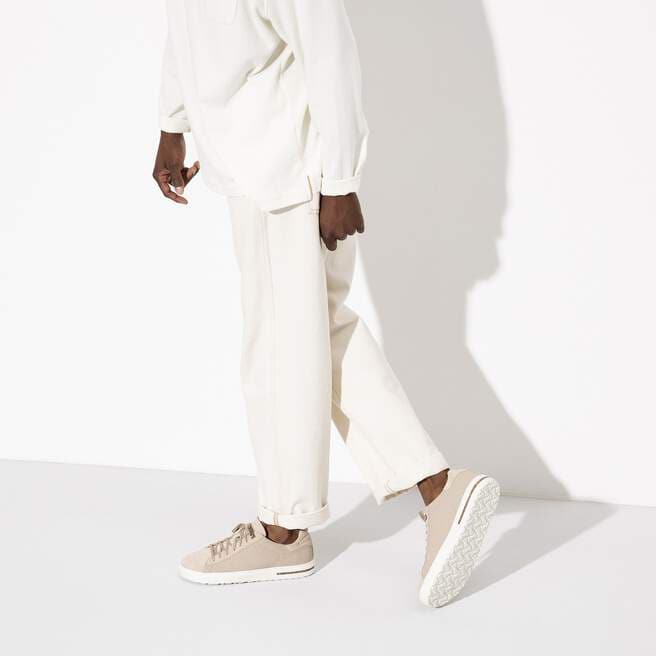 The comfort of our classic sandal is reimagined in a street-smart sneaker with the Bend. A cork midsole delivers a firm responsive foundation for everyday adventures. Removable contoured cork footbed provides all-day support. The upper is made from smooth canvas in combination with soft suede.