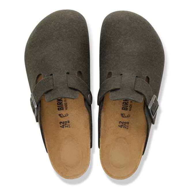 Our most classic, versatile clog takes on one of the season’s top fabrics. The Boston gives you an easy, slip-on design that feels instantly laid-back in soft wool felt. Complete with legendary BIRKENSTOCK design elements, like a contoured cork-latex footbed for the ultimate in support.