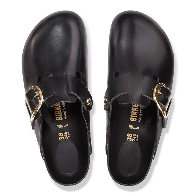 The BIRKENSTOCK Boston is a veritable classic that can easily be worn all year round. It has a legendary status thanks to its sophisticated, individually adjustable design. The Big Buckle version features a large, elegant pin buckle ¨C a fantastic, striking eye-catcher on this otherwise understated sandal. The semi-exquisite footbed is fully lined with soft piumato leather, making it exceptionally comfortable. The upper is made from especially fine and high-quality Amalfi leather.