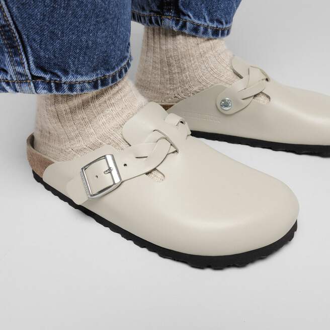The BIRKENSTOCK Boston is a veritable classic that can easily be worn all year round. It has a legendary status thanks to its sophisticated, individually adjustable design. Here, the model comes with a special detail: the straps have a braided pattern, making them the perfect match for fashionable boho styles. The semi-exquisite footbed is fully lined with soft piumato leather, making it exceptionally comfortable. The upper is made from especially fine and high-quality Amalfi leather.