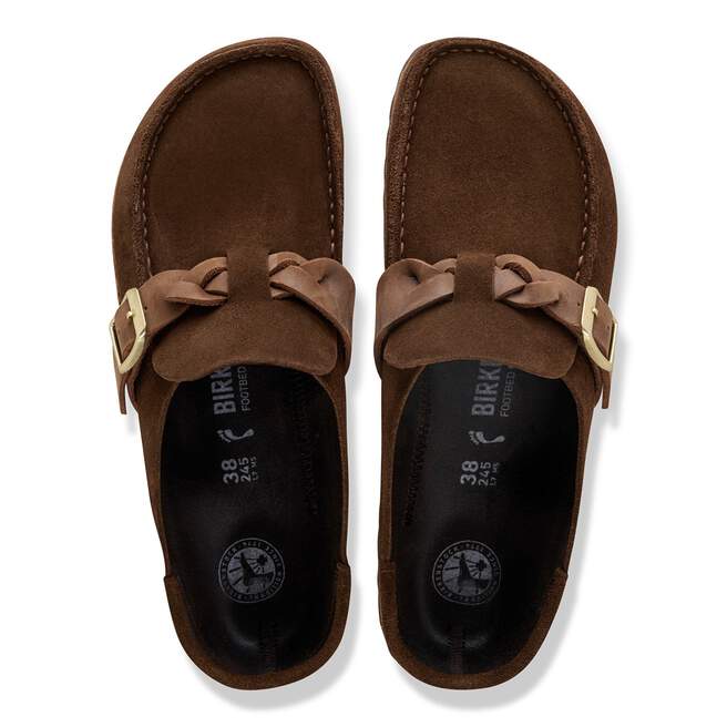 Classic suede with a twist. The Buckley clog brings heritage texture to the forefront with a braided oiled leather strap, designed to deepen in character with wear. On an original contoured footbed, it’s a clog that feels uniquely yours.