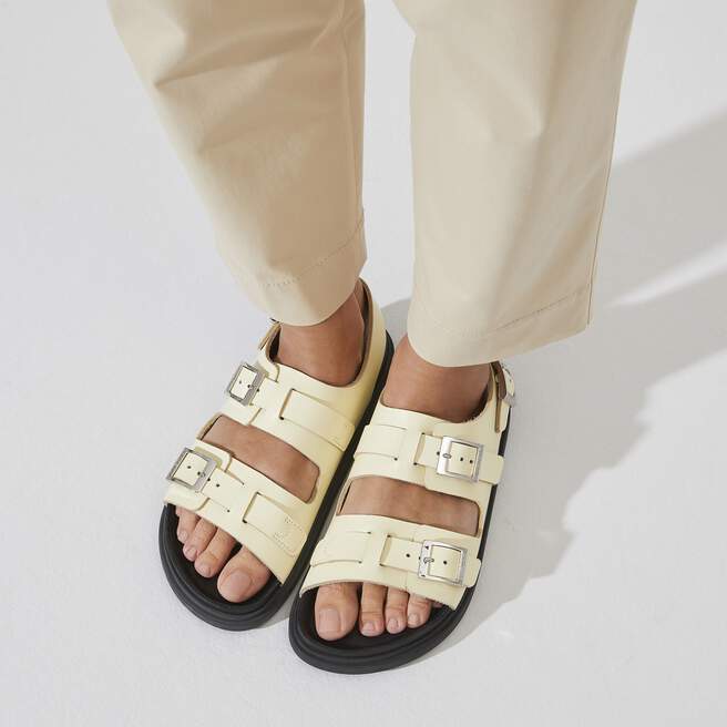 Made them look. The Cannes sandal pairs sophisticated details with a city-ready sole. Shiny buckles and threaded straps are all elegance above an injected natural rubber sole, designed for maximum flexibility. This Exquisite style features an original footbed wrapped in luxuriously smooth leather¡ªan ultra-premium touch you’ll feel as soon as you step in.