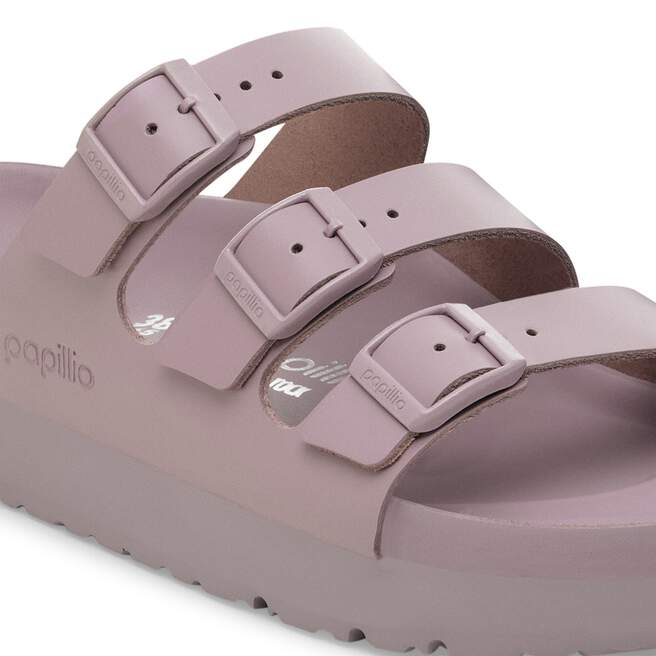 The BIRKENSTOCK Florida is the ideal sandal for anyone who spends a lot of time on their feet. This three-strap sandal offers good grip and maximum comfort. The new platform flex outsole has a wider heel section for increased stability and ideal weight distribution. The updated design with horizontal grooves in the front part improves flexibility and the rolling motion. The exquisite footbed is fully lined with soft piumato leather, making it exceptionally comfortable. The color-coordinated details round off the shoe¡¯s look of sophistication. The upper is made from high-quality, soft natural leather.