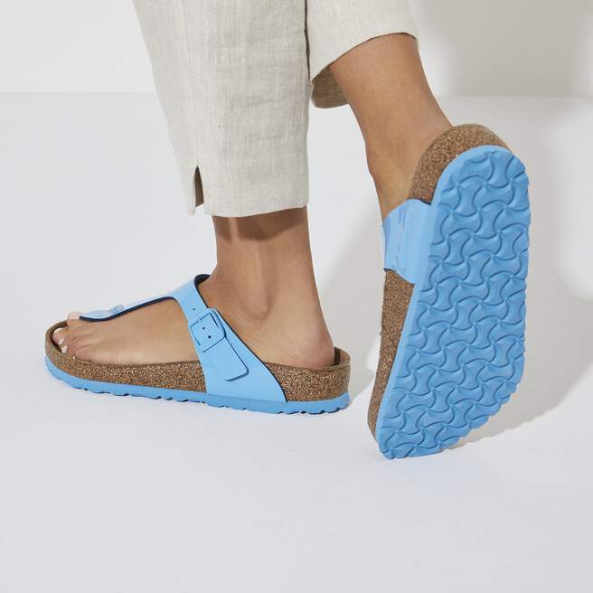 The spotlight’s on Gizeh. A high-shine finish glosses over the iconic thong sandal, accented by a tonal buckle. Complete with an original BIRKENSTOCK cork-latex footbed that shapes to you for custom support.