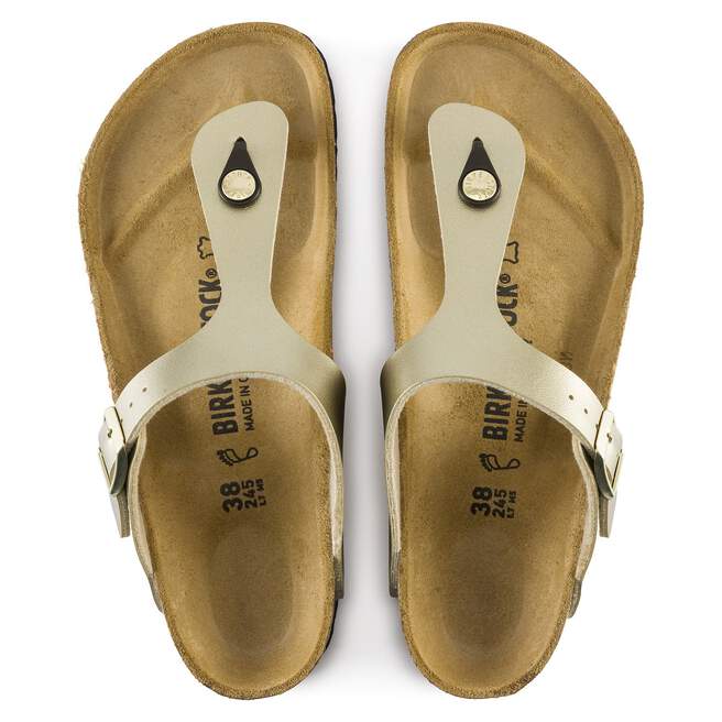 The Gizeh brings legendary comfort and elegant detailing to the thong sandal. A shimmery, metallic finish shines up the iconic style to stand out from the rest. Complete with classic BIRKENSTOCK design elements, like a contoured footbed for the ultimate in support.