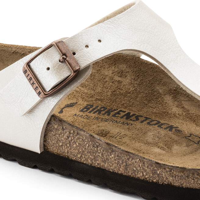The BIRKENSTOCK Gizeh brings legendary comfort and elegant detailing to the thong sandal. A statement finish adds a special sheen to the everyday favorite. Complete with an original cork-latex footbed for all-day support.