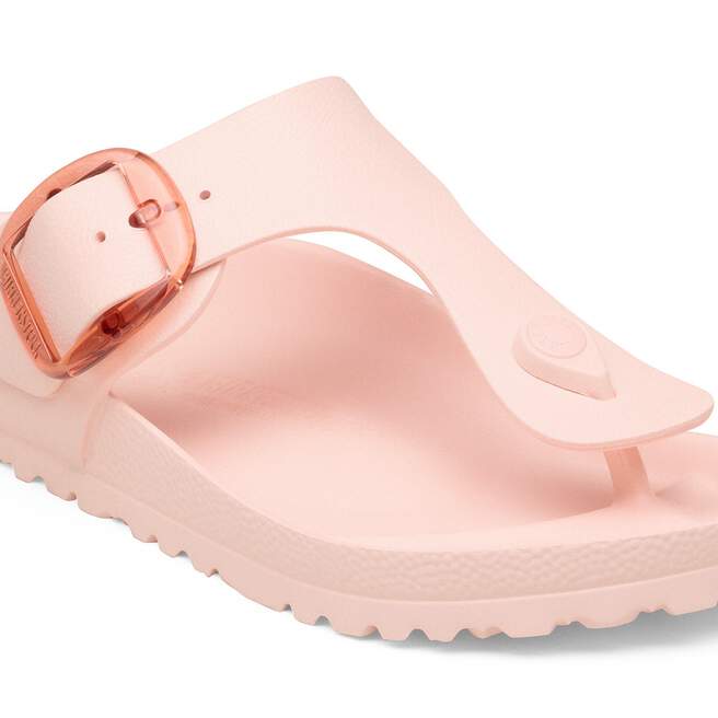 The BIRKENSTOCK Gizeh is a genuine classic. This version comes with our popular Big Buckle made from corrosion-resistant plastic. Modeled on the cork sandal, it is made from the especially light and highly flexible material EVA. The high-quality, odor-neutral EVA has been tested for harmful substances and combines numerous positive attributes: it is very light, highly elastic, water-resistant, and skin-friendly and offers the comfort you have come to expect from BIRKENSTOCK.