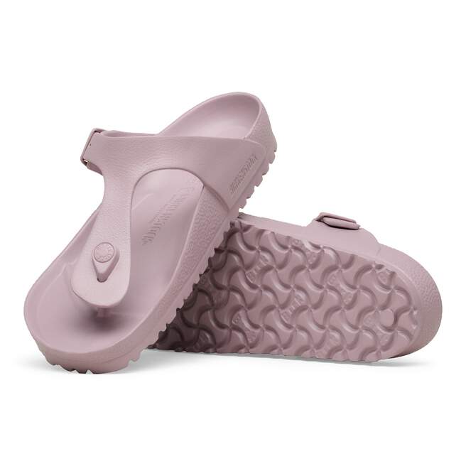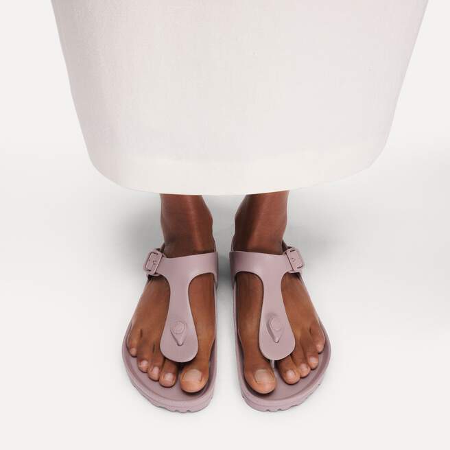 The BIRKENSTOCK Gizeh is our classic thong sandal. Modeled on the cork original, this sandal is made from ultra lightweight and highly flexible EVA. These colorful sandals are shock-absorbent, waterproof, and skin-friendly. Wear them at the beach, in the garden, or in wellness and spa areas. It’s the perfect addition to your classic BIRKENSTOCK sandals.