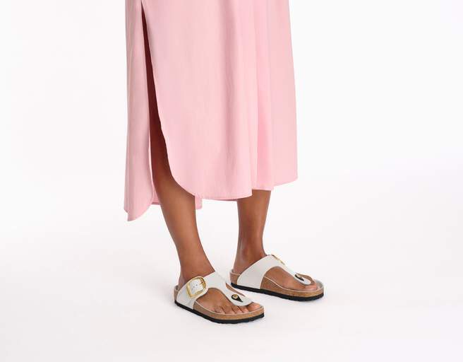 Elegant and refined since ’63. The Gizeh sandal doubles the buckle and ups the shine with oversized, hammered hardware and a glossy finish. The style is grounded in our original contoured footbed, lined with ultra-smooth leather for a luxe feel every time.