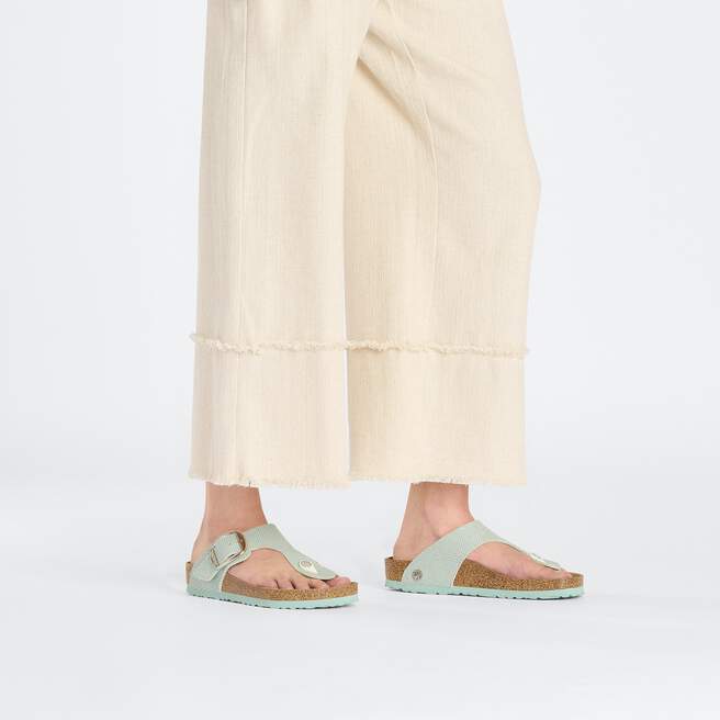 The Gizeh sandal refines the fit with legendary comfort and elegant detailing. The iconic style is a natural in vegan cotton canvas. A gleaming oversized buckle brings the style together with a statement finish that reads coastal chic. It all rests on an original contoured footbed for the ultimate in support.