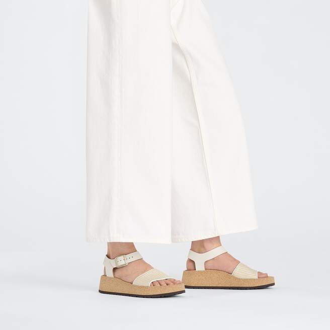From Papillio? by BIRKENSTOCK?. The Glenda wedge brings on the breeze in summer-ready raffia. As elevated as it looks, with an ankle strap and contoured footbed for the ultimate in support. Put your comfort above the rest.