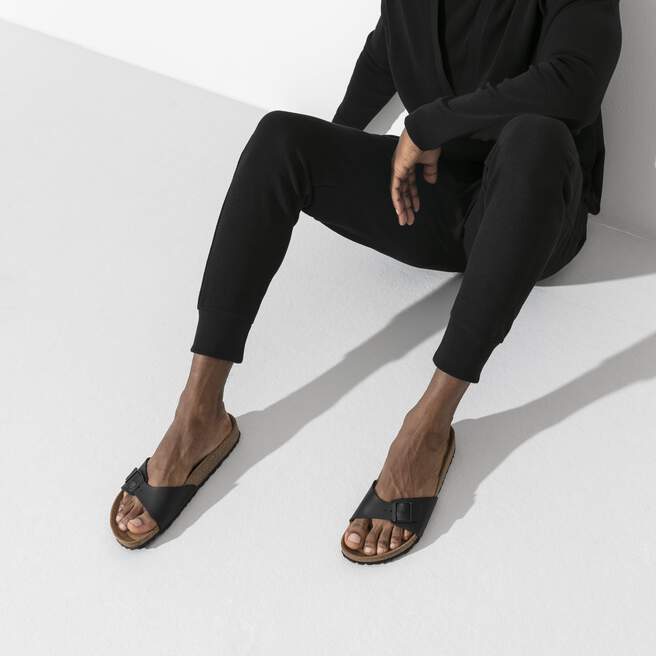 The original BIRKENSTOCK Sandal. A strap, a buckle, and a contoured cork footbed are masterfully combined to create the Madrid. The upper is made from the skin-friendly, hard-wearing synthetic material Birko-Flor?.