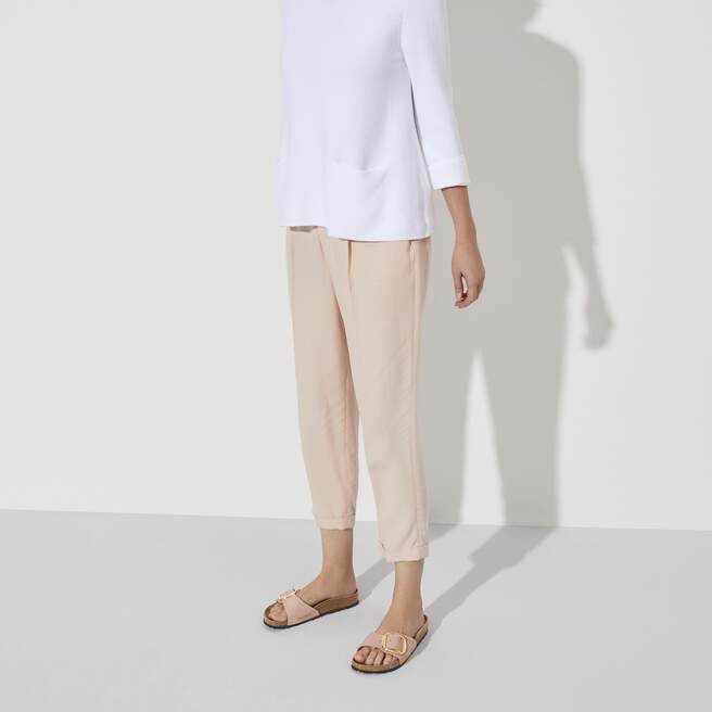A strap, a buckle and a contoured cork footbed are masterfully combined to create the original Birkenstock sandal – the Madrid. An iconic slide now with an amplified buckle accent. Shown in nubuck leather.