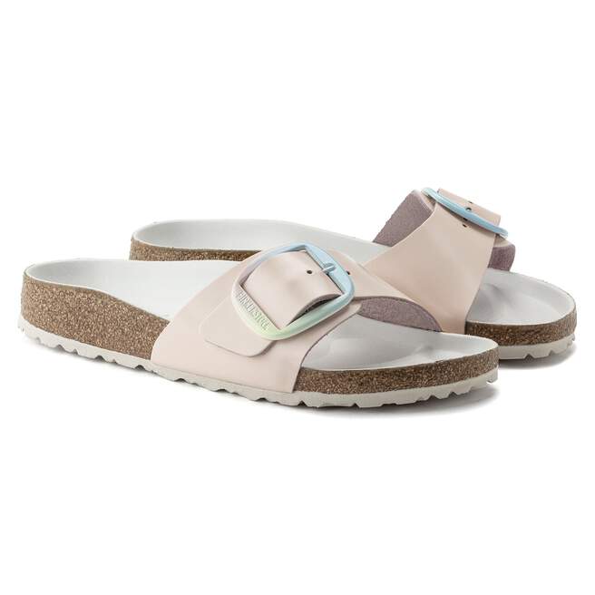 The original BIRKENSTOCK Sandal. A strap, a buckle, and a contoured cork footbed are masterfully combined to create the Madrid. This version features our popular Big Buckle with an ombre effect ¨C a colorful pastel accent on this otherwise understated sandal. The color-coordinated semi-exquisite footbed is fully lined with soft piumato leather. The upper is made from high-quality aniline leather.