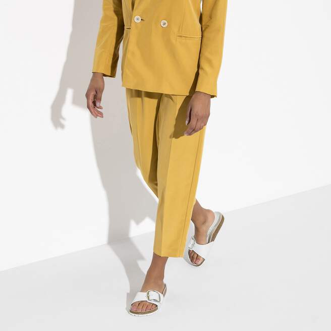 A strap, a buckle and a contoured cork footbed are masterfully combined to create the original Birkenstock sandal – the Madrid. An iconic slide with amplified buckle accent. The lining of the semi-exquisite footbed is covered with soft smooth leather and matches the upper in color. The upper is made from high-quality, especially soft natural leather.