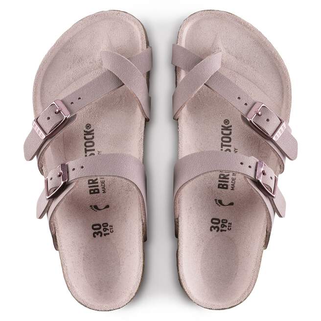 The Mayari for kids from BIRKENSTOCK – a comfortable sandal with adjustable, crisscrossing straps that form a single loop around the toe. Classic support and adjustability, designed beautifully. The upper is made from the skin-friendly, hard-wearing synthetic material Birkibuc?.