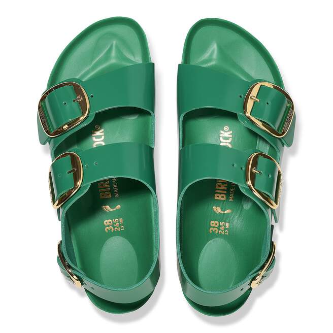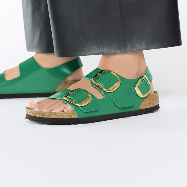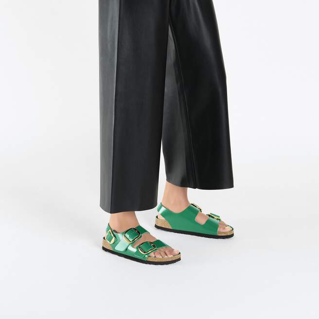 Maximum grip, stability, and a perfect fit! The BIRKENSTOCK Milano offers all of this thanks to its compact design with an ankle strap. The Big Buckle version features a large, elegant pin buckle. The semi-exquisite footbed is fully lined with soft piumato leather, making it exceptionally comfortable. The upper is made from high-quality natural leather with a shiny patent coating.