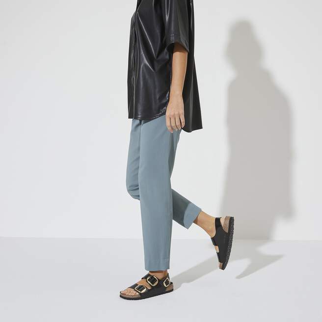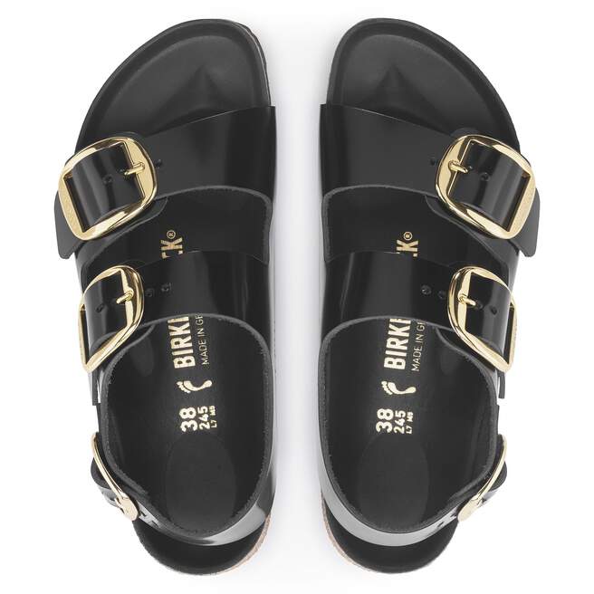 Maximum grip, stability, and a perfect fit! The BIRKENSTOCK Milano offers all of this thanks to its compact design with an ankle strap. The Big Buckle version features a large, elegant pin buckle. The semi-exquisite footbed is fully lined with soft piumato leather, making it exceptionally comfortable. The upper is made from high-quality natural leather with a shiny patent coating.