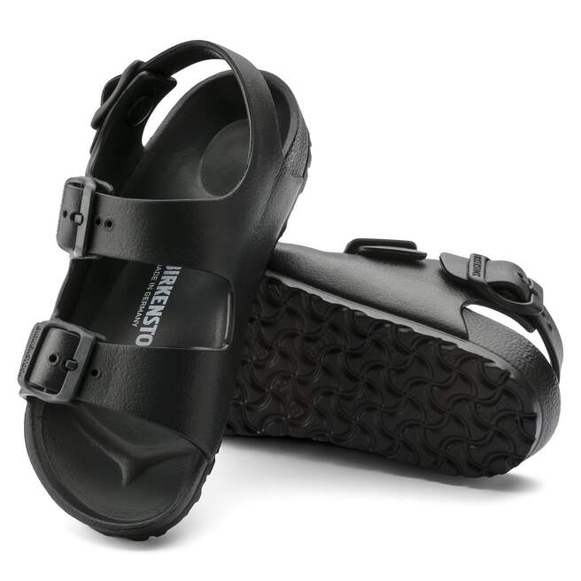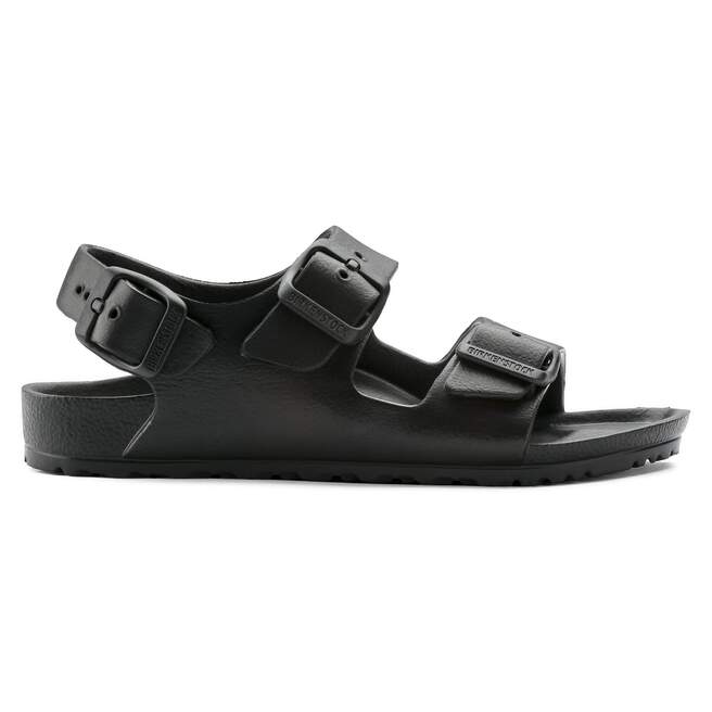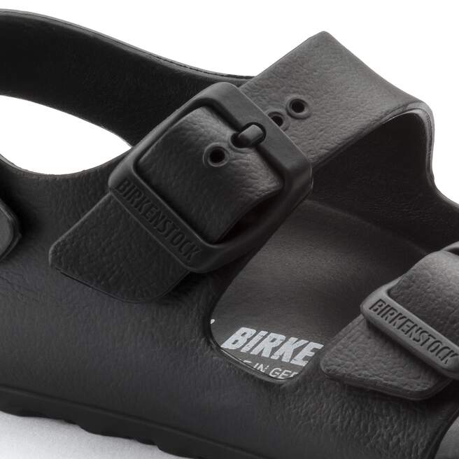 The BIRKENSTOCK Milano – a classic back-strap sandal with functional style for kids. Modeled on the cork original, this back-strap sandal is made from ultra lightweight and highly flexible EVA. These sandals are shock absorbing, waterproof, and skin-friendly. Wear them at the beach, in the backyard, or by the pool. Sandals for all-day play!