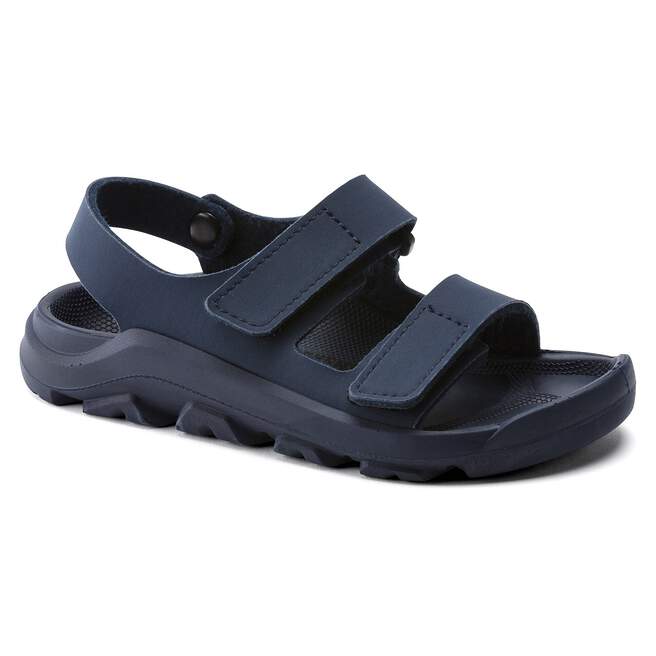 The perfect play sandal for kids and their everyday adventures! Totally waterproof. Incredibly durable. And, of course, wildly comfortable. The BIRKENSTOCK Mogami features a waterproof synthetic Birko-Flor upper, hook and loop straps and a contoured PU footbed for Birkenstock comfort and support.