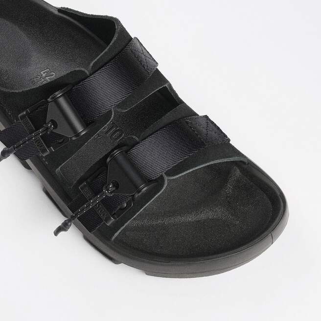 BIRKENSTOCK and Maharishi have come together to elevate the experience of walking with the Mogami Terra Tech, masterfully crafted from top to bottom with adaptable features made for outdoor excursions. The two straps are composed of deluxe suede and shiny webbing, each with a high-function quick release buckle as a centrepiece. Below, its polyurethane sole is injected with grip and protection, converting BIRKENSTOCK¡¯s signature anatomical footbed into its waterproof iteration.