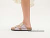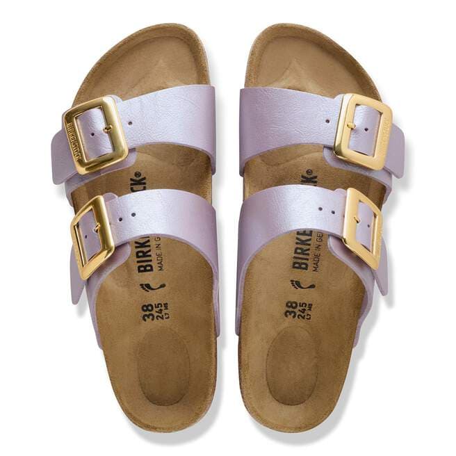 The BIRKENSTOCK Sydney proves that fashion and functionality can go hand in hand. With its two simple straps, it¡¯s a real hit with women who want both high fashion and comfort. This sandal version has a silky sheen finish. The shiny, gently rounded padded buckles are especially eye-catching. The upper is made from the skin-friendly, hard-wearing synthetic material Birko-Flor?.