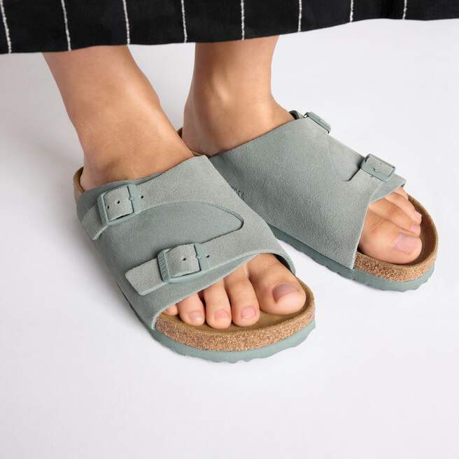 Back to celebrate 60 years as a fan favorite. The Z¨¹rich slide returns with its long-loved design, featuring extra coverage and adjustability from two metal pin buckles. Velvety soft suede lends a classic feel to the upper, above a supportive contoured footbed. As comfortable as you remember it.