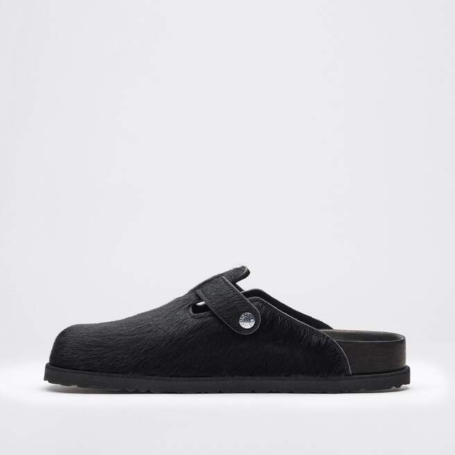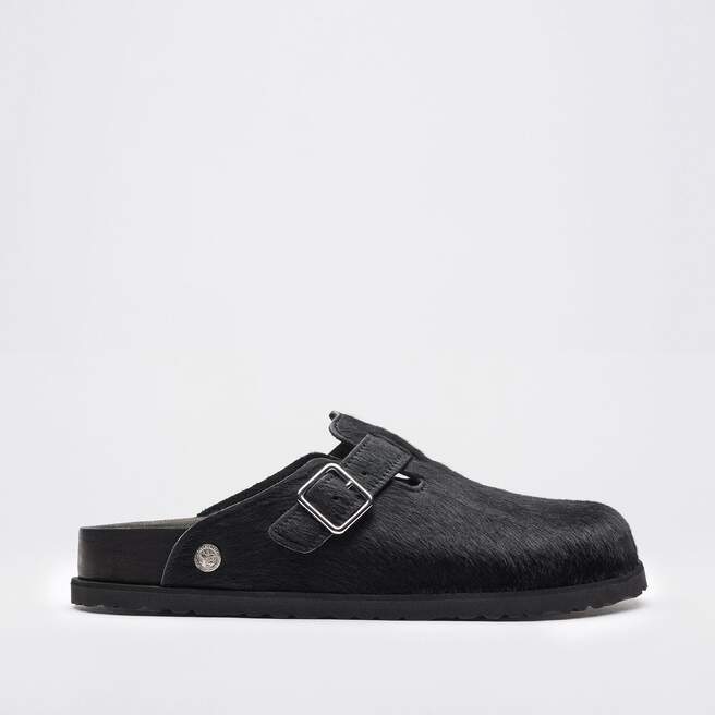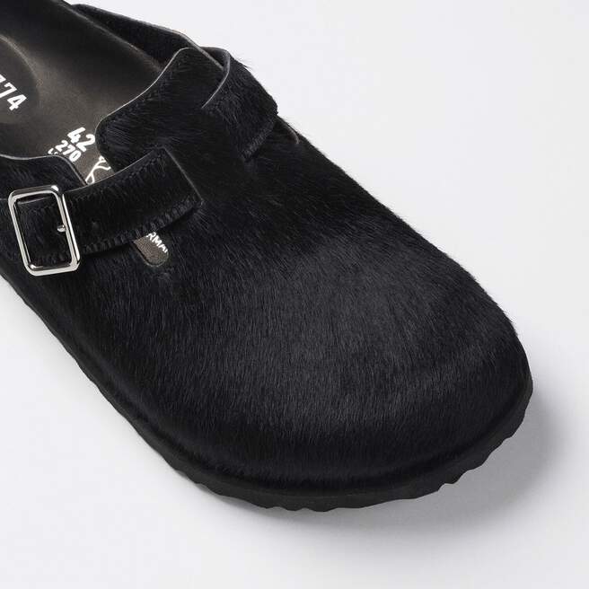 The Boston clog is reimagined with a pony- like fur upper for a premium look, enhancing the Boston¡¯s classic silhouette. Available in 2 colourways, leopard print and black, each pair features an exclusive 1774 buckle. Crafted with BIRKENSTOCK¡¯s signature footbed and covered with premium, tonal nappa leather, these clogs echoe the elegance and expressive spirit of 1920s Berlin.