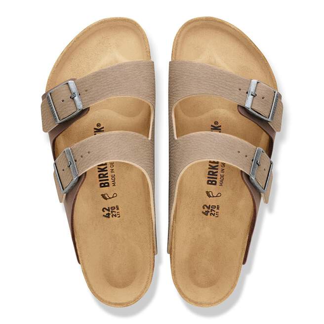 The BIRKENSTOCK Arizona is a genuine classic that has been delighting both men and women for decades. This simple sandal with two straps stands for timeless design and has long held cult status thanks to its comfort factor. The sophisticated Birko-Flor? synthetic material gives the sandal straps a matte finish reminiscent of natural leather grain, yet they are 100% vegan. The upper is made from smooth microfiber with a velvety feel.