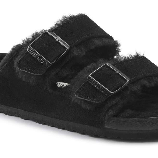 The legendary two-strap design from BIRKENSTOCK – the Arizona. Iconic style with the signature comfort of the BIRKENSTOCK footbed. Both the upper and the footbed are fully lined in genuine shearling creating both a cozy and fashionable look. Featured in genuine high-quality suede ¨C these sandals are perfect for chilly, winter evenings.