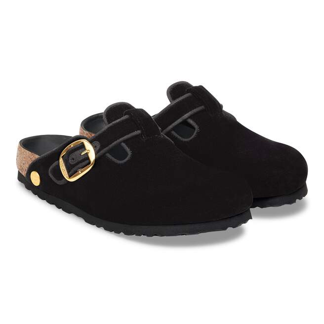 Your special occasion clogs. Smooth, velvety fabric gives the Boston clog’s iconic design a subtle shimmer for the season along with a shiny, oversized buckle. The style is grounded in our original contoured footbed, lined with ultra-smooth leather for a luxe feel every time.