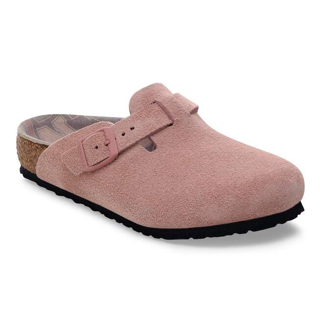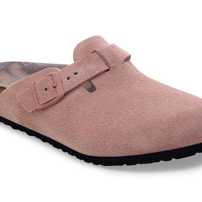 The BIRKENSTOCK Boston clog is a veritable classic that can easily be worn all year round and offers support and protection for kids¡¯ feet. This model is characterized by the printed lining. The print features the franchise names in college colors, giving the shoe a sporty retro look. The color-coordinated pin buckles round off the shoe¡¯s look of sophistication. The upper is made from especially soft suede which hugs the foot like a second skin.