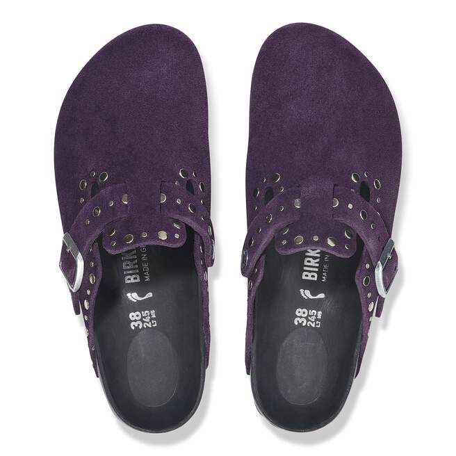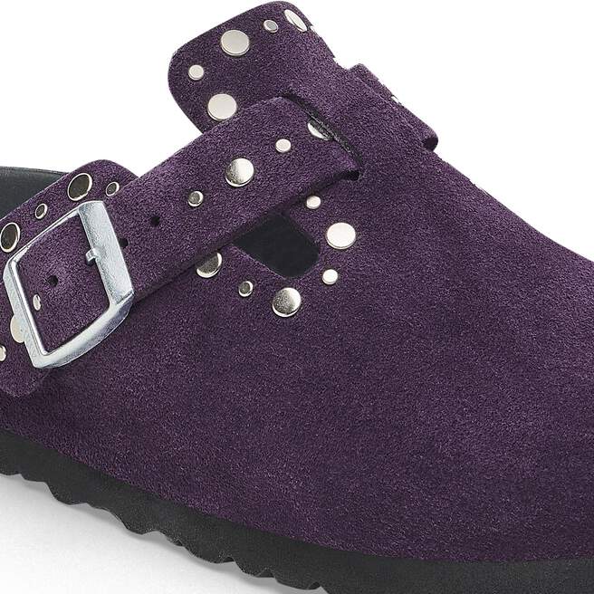 So consistently comfortable, the Boston clog has become a coveted, year-round favorite. Metallic rivets stud its classic suede upper in an eyecatching design, precisely placed to leave the underside smooth for comfortable wear. It rests on an Exquisite footbed fully lined in smooth leather for a supportive, luxe-to-the-touch feel.
