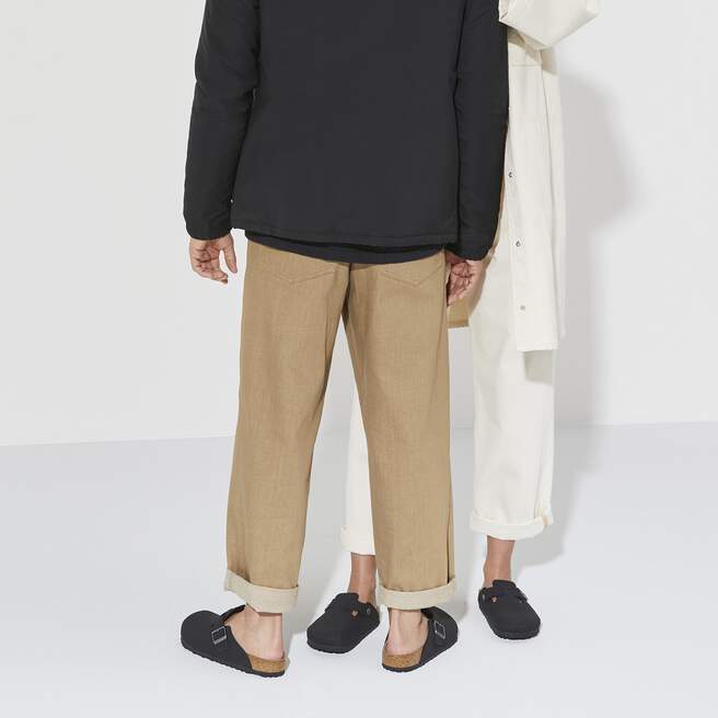 The signature slip-on clog from BIRKENSTOCK – the Boston. A casual-wear staple that is perfect all year round with a simple, adjustable design and contoured cork footbed that forms to the shape of your foot. The color-coordinated outsole rounds off the shoe¡¯s look of sophistication. Available in vegan materials including an upper made from the skin-friendly, hard-wearing synthetic material, Birkibuc.
