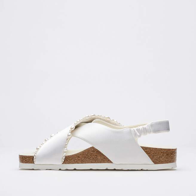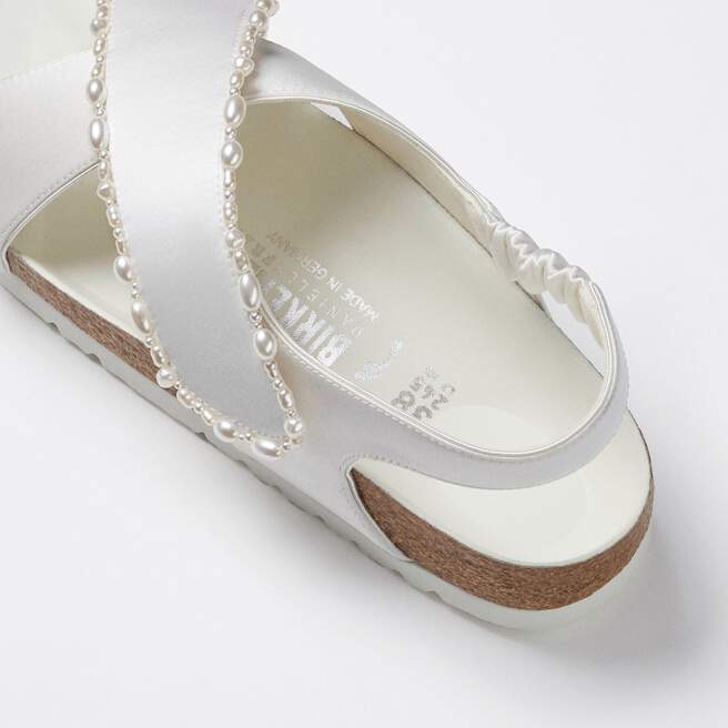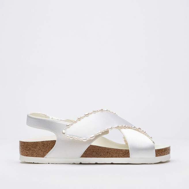 The Tulum is reimagined in a luminous ivory satin, featuring a graceful crossover profile and a slim ankle strap adorned with delicate pearls. The design also introduces an innovative adjustable hidden buckle closure. Handcrafted in Germany, the shoe merges BIRKENSTOCK¡¯s legendary comfort with Danielle Frankel¡¯s signature touch of refined elegance