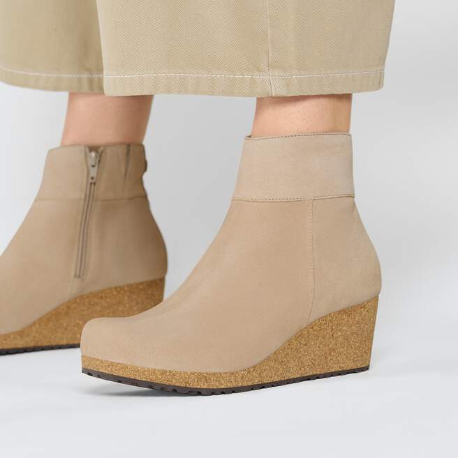 The Ebba ankle boot brings the contoured comforts of the BIRKENSTOCK footbed together with a cork wedge heel¡ªall without adding pressure to the front of your foot. In smooth suede for a classic feel. Level up your style in comfort.