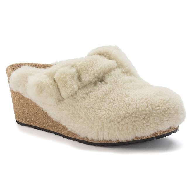 The Fanny clog from the Papillio collection is sure to impress. The wedge heel is universally flattering and gives these clogs a trendy look. The upper is made from soft teddy shearling with a microfiber lining.