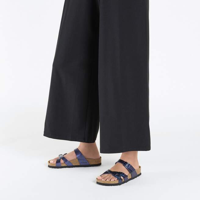 The BIRKENSTOCK Franca is a jaunty sandal with slim cross-over straps. The impressive combination of design and wearability will see fashion-conscious women through the day with elegance and comfort. Here, we see the sandal with a silky sheen finish. The color-coordinated details round off the shoe¡¯s look of sophistication. The upper is made from the skin-friendly, hard-wearing synthetic material Birko-Flor?.