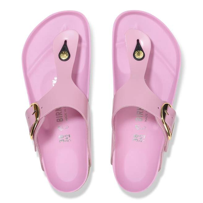 The Gizeh sandal refines the fit with legendary comfort and elegant detailing. This design doubles the buckle and ups the shine with gleaming, oversized hardware and a glossy finish. The style is grounded in our original contoured footbed, designed to shape to you for the ultimate in custom support.