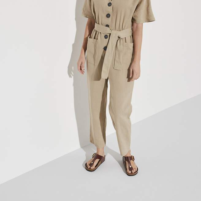 The Gizeh sandal refines the fit with legendary comfort and elegant detailing. This design doubles the buckle and ups the shine with gleaming, oversized hardware and a glossy finish. The style is grounded in our original contoured footbed, designed to shape to you for the ultimate in custom support.