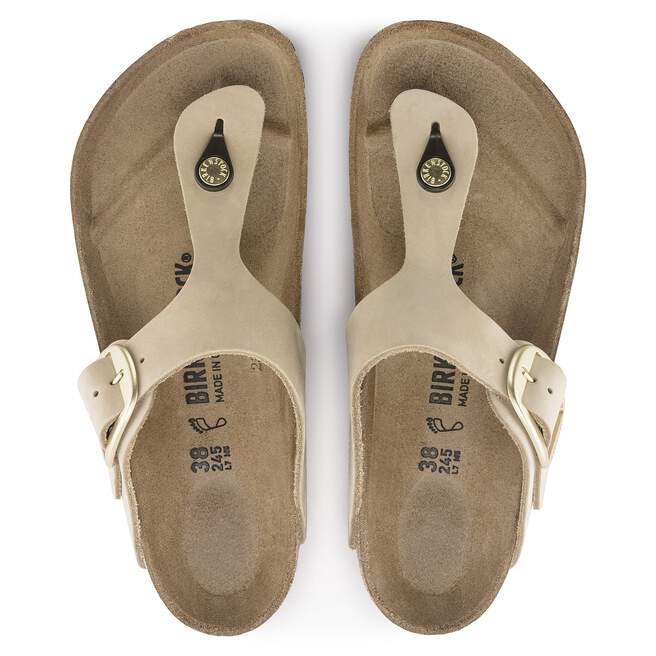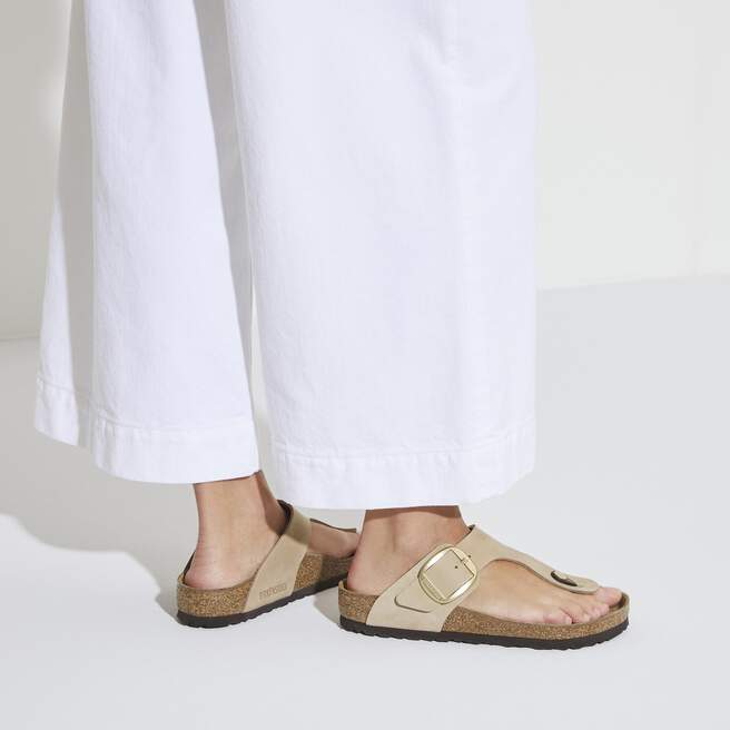 Meet the brand new Gizeh Big Buckle. This classic thong sandal gets a fresh update with an elegant amplified buckle. Feminine style that’s comfortable and easy to wear. The footbed is lined with a soft suede & the upper is made from high-quality, nubuck leather.