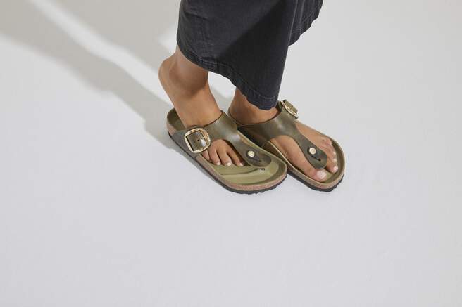 Meet the brand new Gizeh Big Buckle. This classic thong sandal gets a fresh update with an elegant amplified buckle. This feminine style that’s comfortable and easy to wear. The lining of the footbed is covered with soft smooth leather and matches the shoe in color. The upper is made from extra thick, smooth leather and features an open-selvage finish.